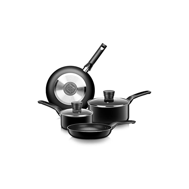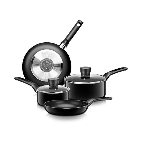 SereneLife Kitchenware Pots & Pans Basic Kitchen Cookware, Black Non-Stick Coating Inside, Heat Resistant Lacquer (6-Piece Set), One Size