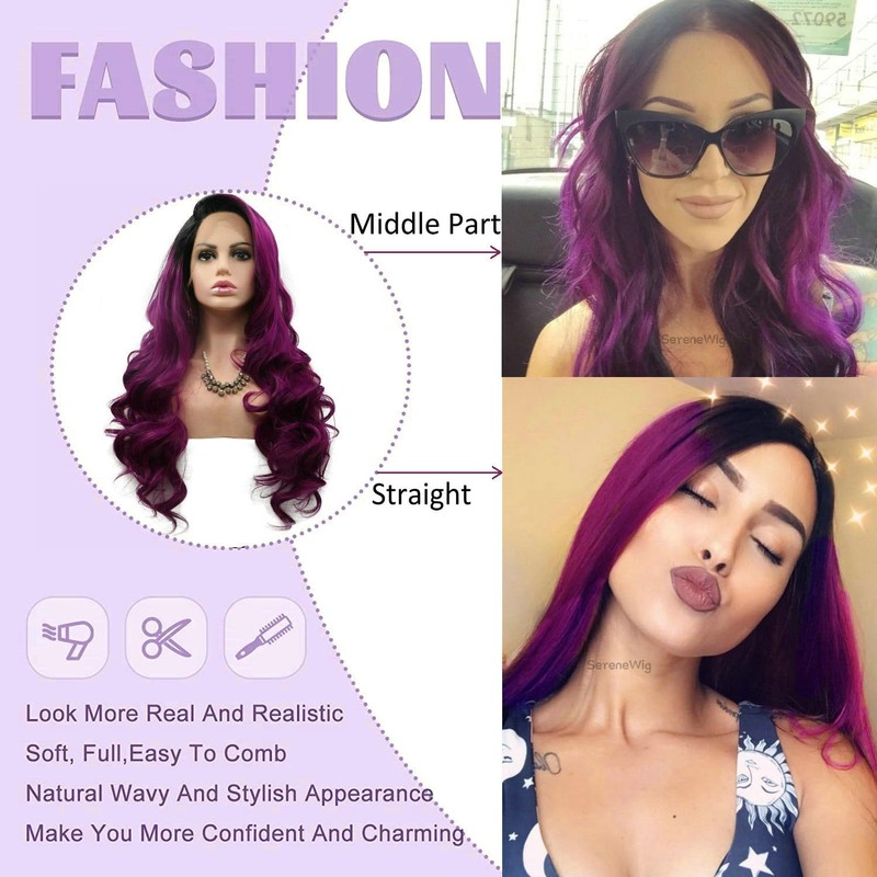 - ❤【Package Included】: 1pc Purple Ombre Synthetic Lace Front Wigs + 2 pcs x Stretchable Elastic Nylon Free Wig Caps.