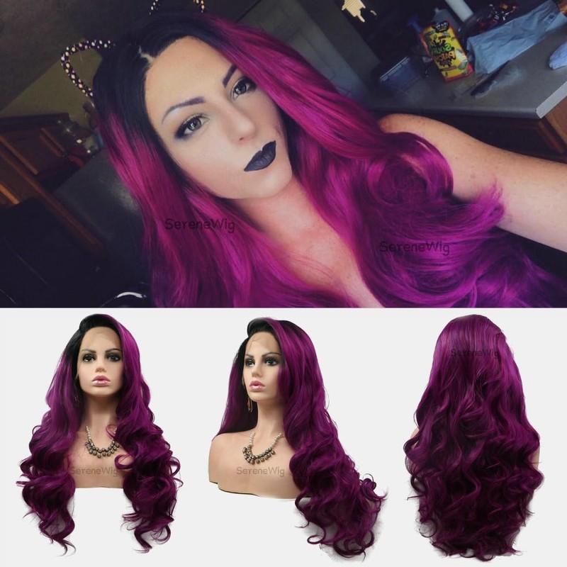 - ❤【Synthetic Wig Features】: This 1B Purple Ombre Synthetic Lace Front Wigs Could Be Heated within 320F, When Heated, Please Run Through the Hair Quick in Case of Damage the Hair.