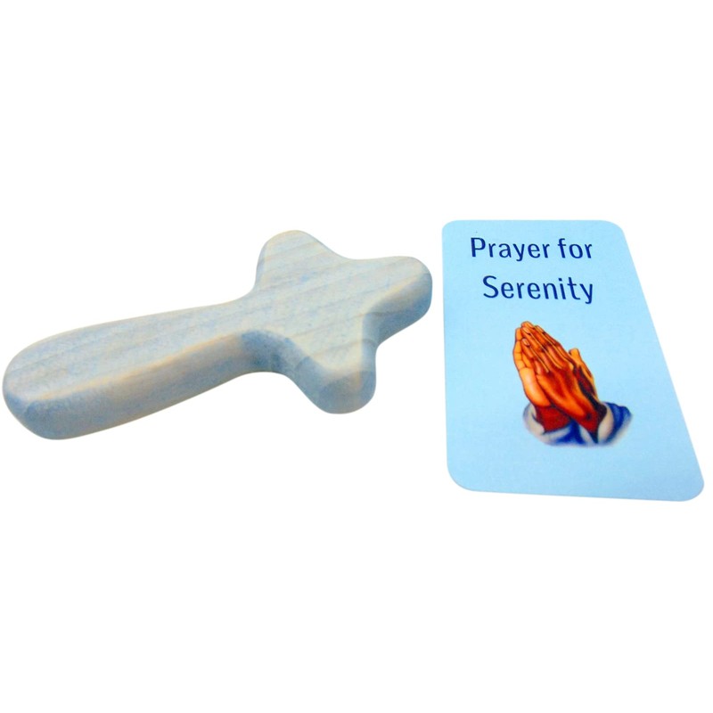 Serenity Prayer Hand Held Cross Handpainted Wood with Matching Holy Card Set