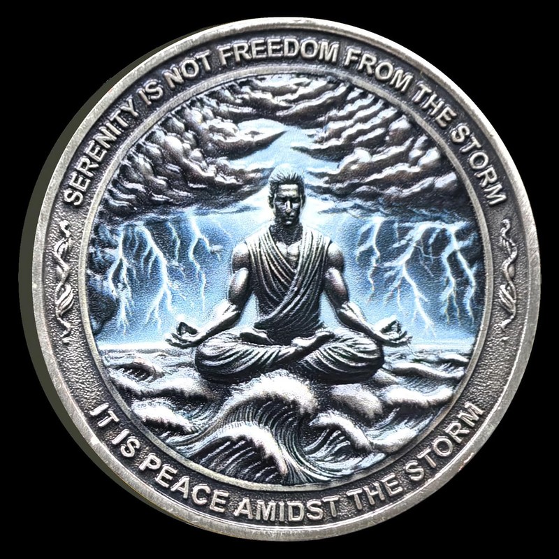 - Inspiring Dual-Sided Artwork: Features the Serenity Prayer on one side, offering daily motivation and reflection; the reverse side displays a meditative figure amidst a storm, symbolizing inner calm and strength