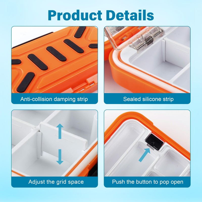 - ✔ Waterproof & Floating: Silicone seal ring ensures full waterproofing. Built-in buoyancy structure keeps box floating, preventing tackle loss