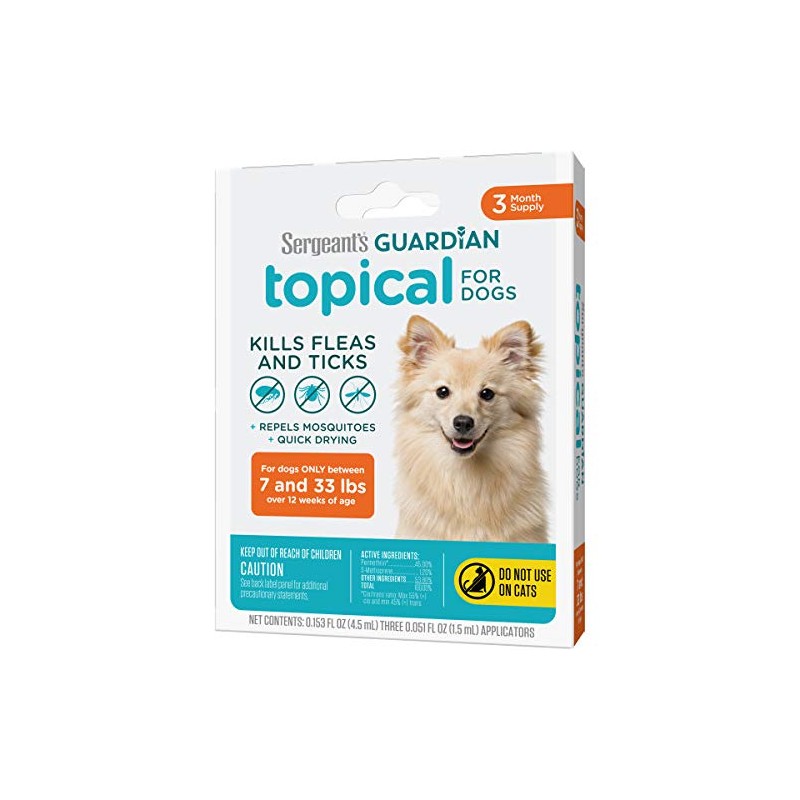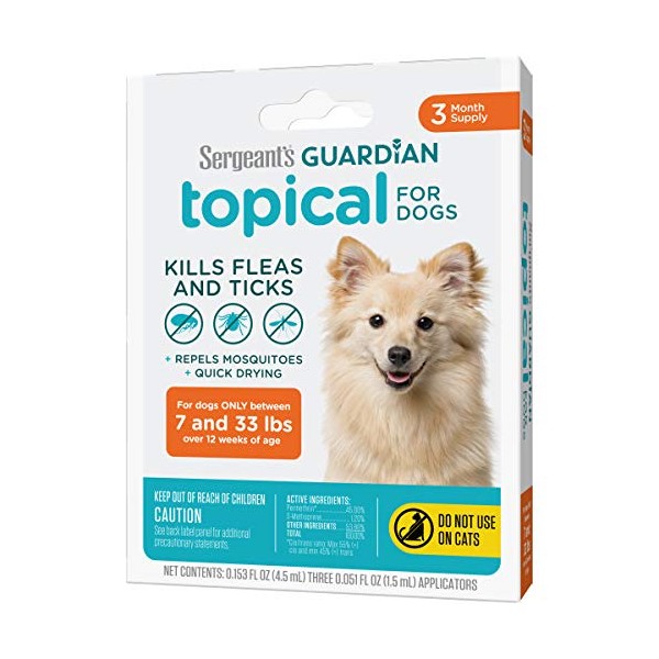 - LONG-LASTING PROTECTION: Sergeant’s Guardian Topical is a flea and tick prevention for dogs that kills fleas and ticks plus repels moquitoes for up to 4 weeks.