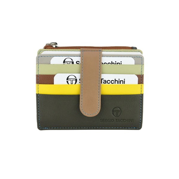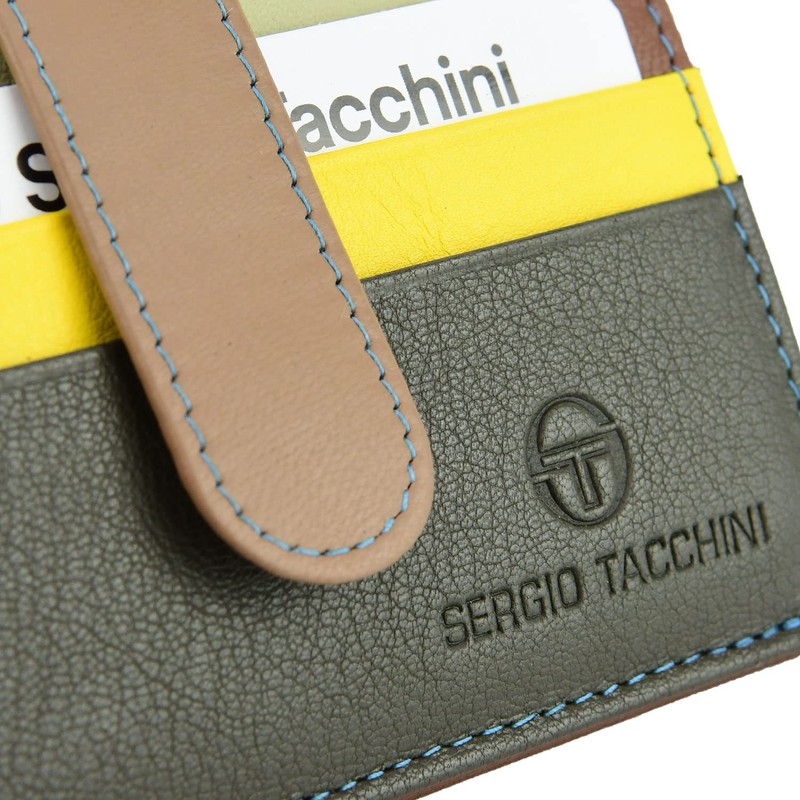 Sergio Tacchini Credit Card Wallet Genuine Leather Small Wallet with Note Compartment, Men and Women, Thin and Elegant, Safari 54, Elegant