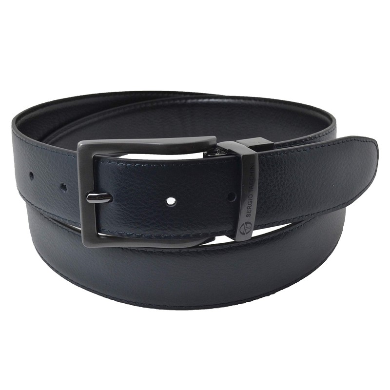 Sergio Tacchini Reversible Men's Belt Made of Genuine Leather, Rectangular Buckle, Adjustable and Can Be Shortened, Black and Blue