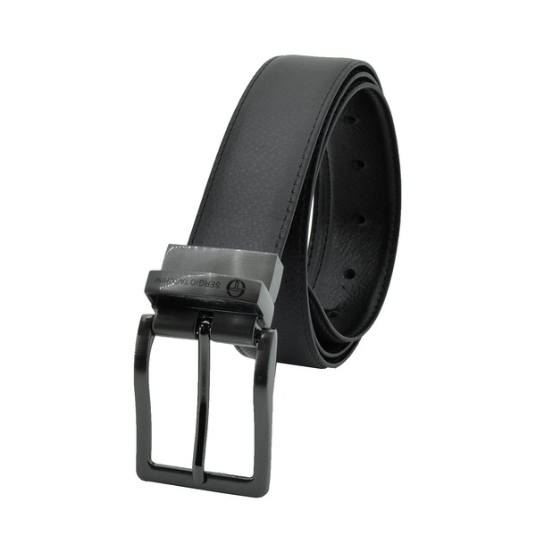 Sergio Tacchini Reversible Men's Belt Made of Genuine Leather, Rectangular Buckle, Adjustable and Can Be Shortened, Black and Brown