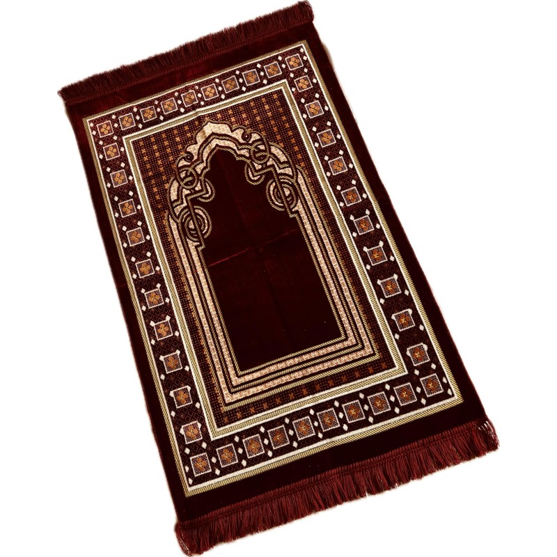 Serhill Muslim Prayer Rug, Soft Plush Thin Islamic Prayer Mat, Janamaz, Sajada, Praying Carpet, Ramadan Gift, Eid Hajj Gift (Carmine)