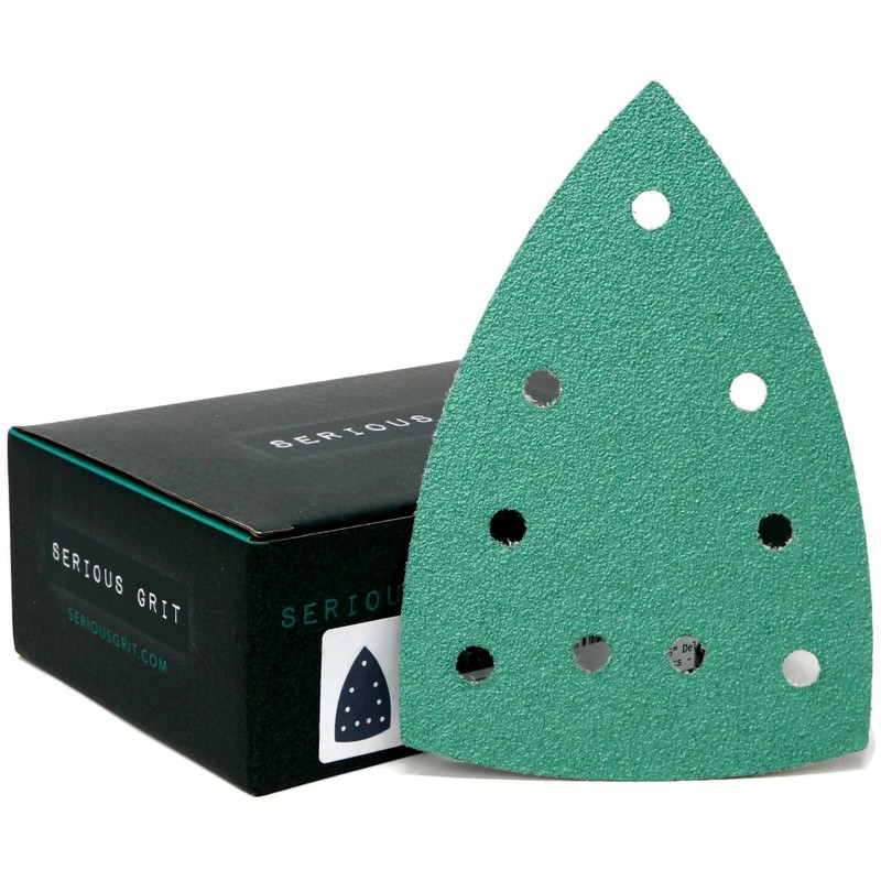 Serious Grit - 60 Grit 4" x 6" Delta (100mm x 150mm) Triangle Sanding Sheets - Fits Festool DTS 400 & Mirka DEOS Delta Sanders - Heavy-Duty Hook & Loop Film Sandpaper for Detail Sanders - 25 Pack Box
