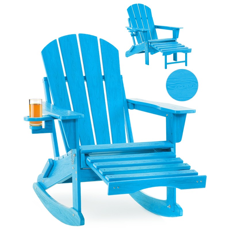 - 4-in-1 Adirondack Rocking Chair: Our designers have assembled the features of folding adirondack chair and rocking chair and fused them into a 4-in-1 multifunctional adirondack rocking chair. You purchase one 4-in-1 adirondack rocking chair, which is equivalent to getting four chairs that are adirondack chair, adirondack chair with ottoman, rocking chair, rocking chair with ottoman.