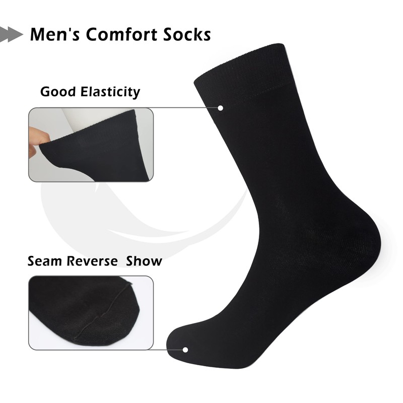 SERISIMPLE Bamboo Dress Men Sock Thin Soft Crew Anti Odor Lightweight Sock Breathable Comfort Cool soft Sock 5 Pairs (Black, Large)