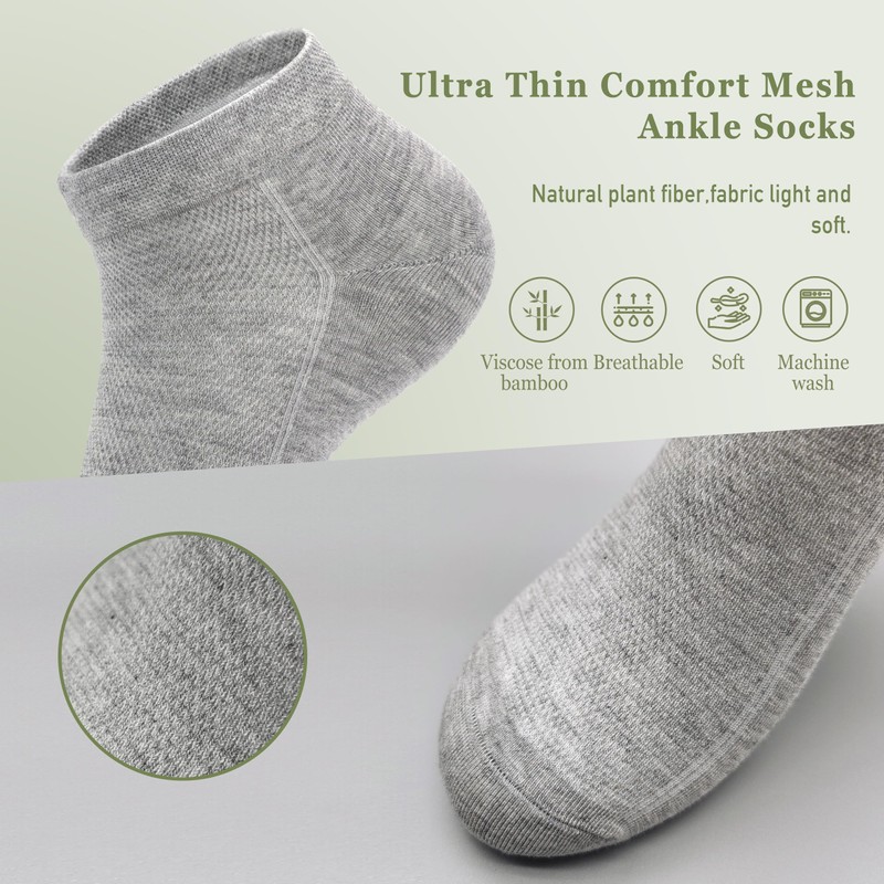 - Experience the exceptional comfort of our Ultra-Comfort Bamboo-Viscose Fiber Mesh Ankle Socks. Crafted with Bamboo-Viscose fiber fabric, these socks are light, soft, and kind to your skin. The breathable mesh design ensures excellent ventilation, keeping your feet cool and comfortable throughout the day.
