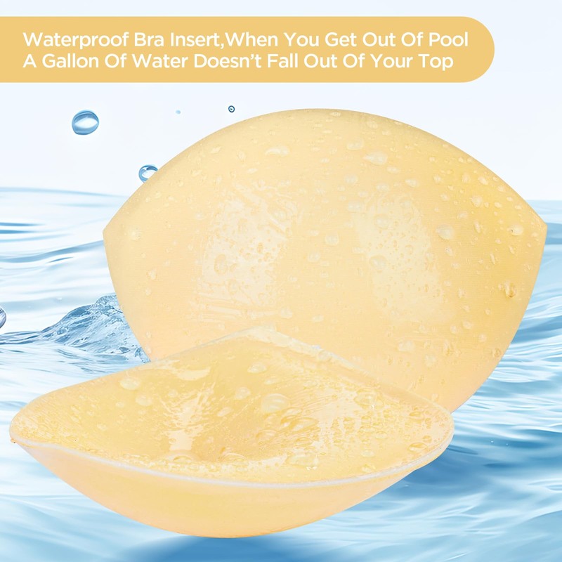 - ---Waterproof Sticky Bra Inserts--- This bra pads were specially designed for swiming lover,When you get out of pool a gallon of water doesn't fall out of your top and maintains its shape when wet.These inserts are super sticky on both sides, which is good if you are nervous about them slipping around or out.Ensuring everything stays put throughout the day.