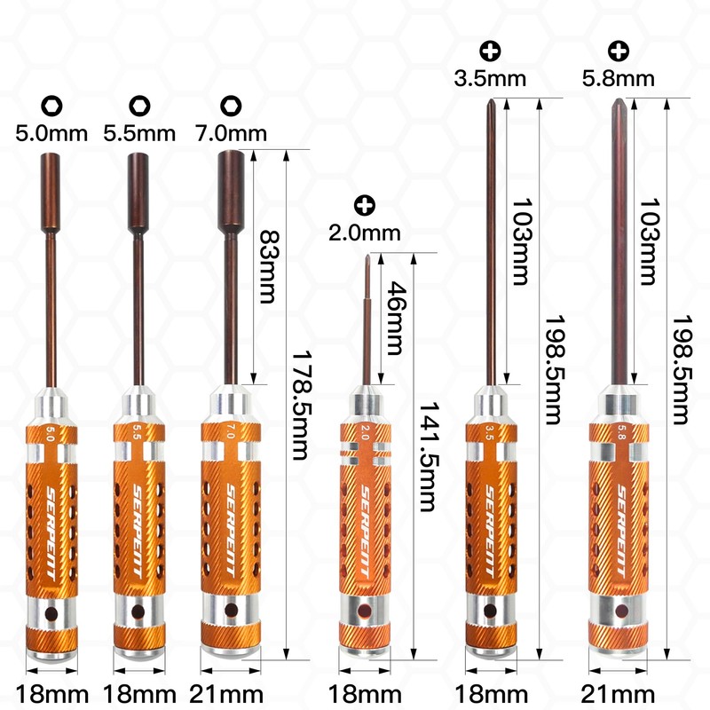 - RC Tool Kit Wide Application Serpent RC Tool Set includes almost all the tools you need to maintain your RC car, RC boat, robot, drone quadcopter, helicopter, airplane, quadcopter, 3D printer, etc. The size at the handle is easy to identify and use. A variety of tools for you to choose from, easy and worry-free installation