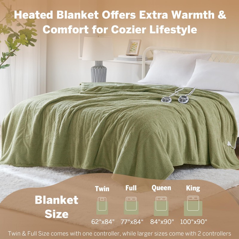 - Energy Saving: Stay warm and cozy while keeping electricity costs low. Our heated throw offers targeted heating on individual without raising your entire home's temperature. SIZE QUEEN OR LARGER comes with 2 controllers