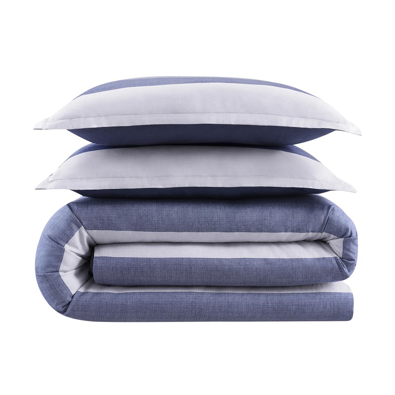 Serta Simply Clean Billy Soft Modern 2 Piece Jersey Striped Comforter Set with Pillow Case for All Season, Twin/Twin XL, Blue