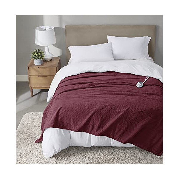 Serta Travis Fleece Ultra Soft Tri-Rib Textured Electric Blanket, Cozy and Snuggly Cover Fast Heating for Cold Weather, Auto Shut Off, Multi Heat Setting Controller, Full, Berry Red