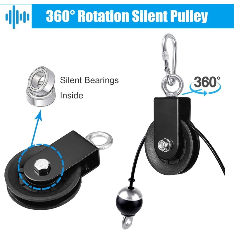 - 【Super Mute Weight Pulley System】Ultra-silence ball bearings , turns more flexibly,pulley wheel is very quiet when it works and won't disturb family and neighbors,which is smooth and durable, rustproof, waterproof and corrosion resistant.It can be used indoors or outdoors for a long time.