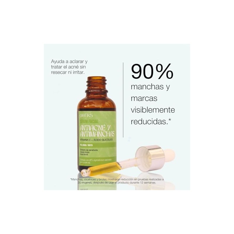🌟 ⭐ Sérum facial antiacné y antimanchas para piel grasa con acido glicolico y vitamina C 30 ml. Biotiks ⭐ 🌟