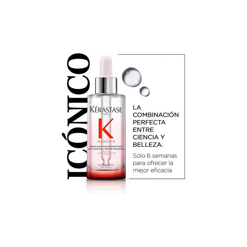 Sérum Genesis Anti-Chute Kérastase – Tratamiento profesional con Aminexil y Flor de Edelweiss que reduce la caída, fortalece las raíces y estimula el crecimiento . Resultados visibles en 6 semanas .