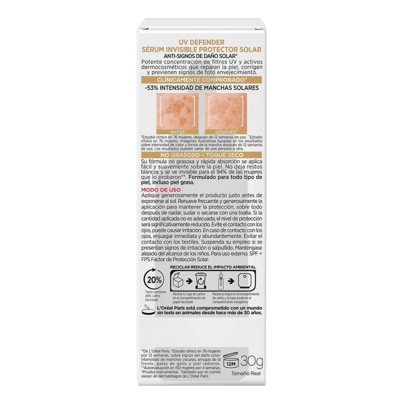 Sérum Protector Solar Invisible Fps 50+ L'oréal Paris 30ml
