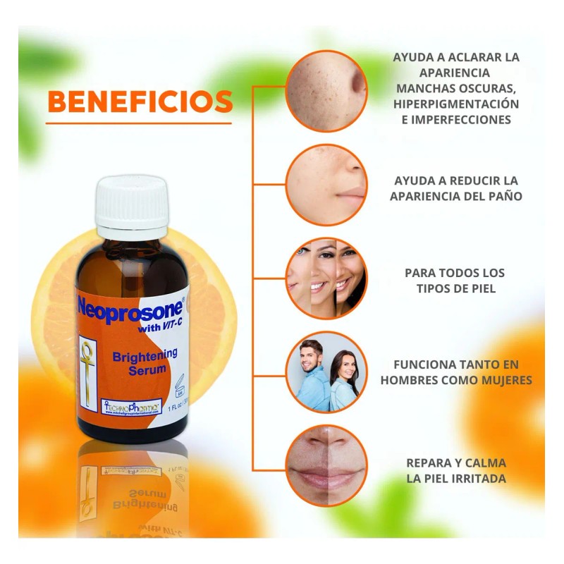 El Suero Iluminador Neoprosone con Vitamina C es un suero específicamente formulado para la decoloración de la piel.