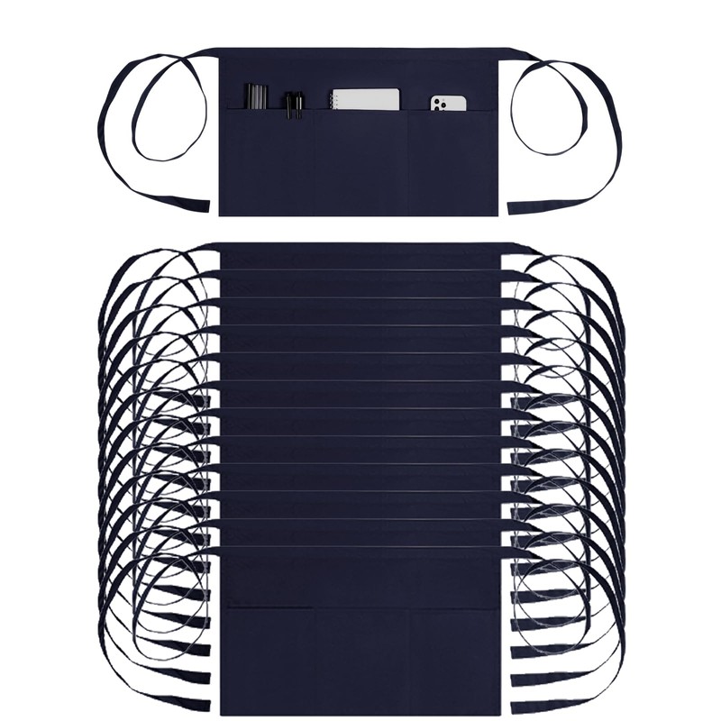 Server Aprons,Waterproof Waitress Aprons bulk Heavy Duty Kitchen Aprons with 3 Pockets for women men (12, Navy)
