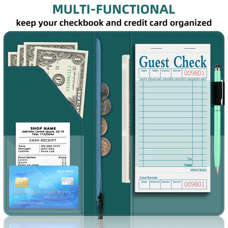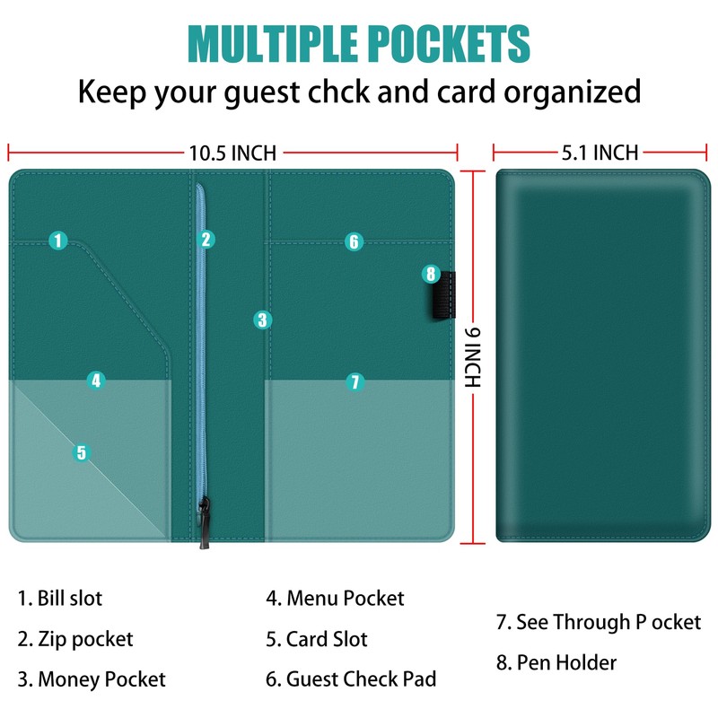 - PRACTICAL: With 7 pockets design which can organize various items very well, such money, business cards, credit cards, receipts, coin, tickets, guest check, pen, etc. In short, it can fully meet your needs at work.
