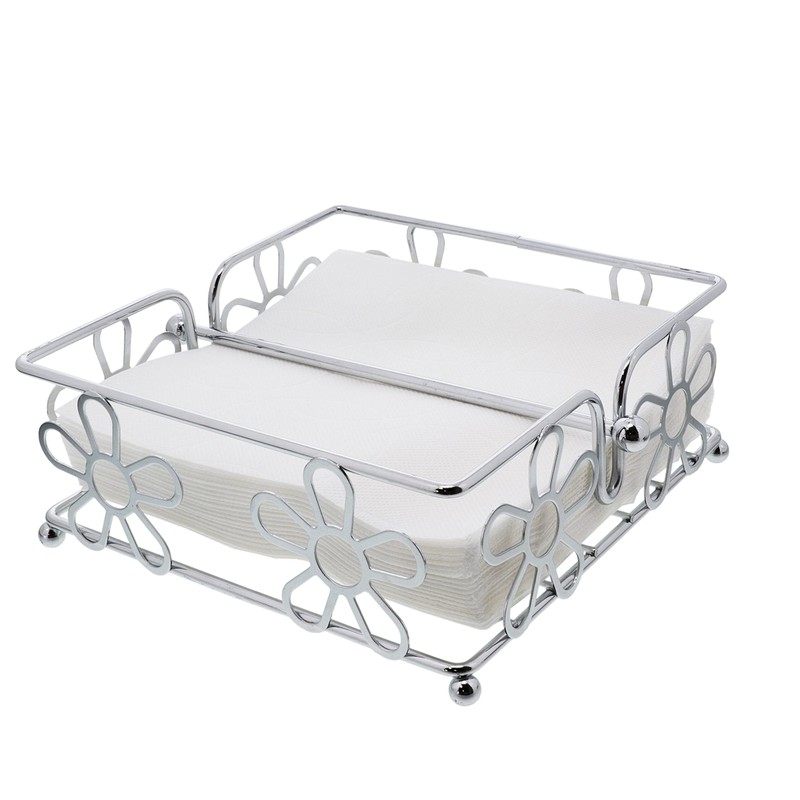 Servette Home Chrome Napkin Holder with Flower Design, Silver