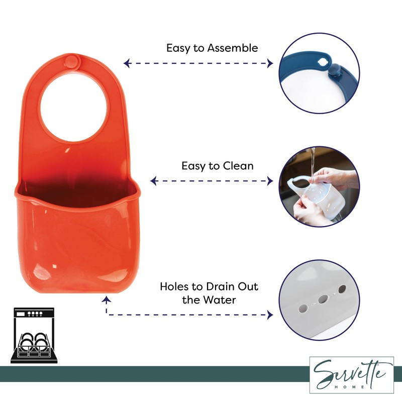 Servette Home Sponge Holder for Kitchen Sink, Rust Red PVC Hanging Sponge Caddy