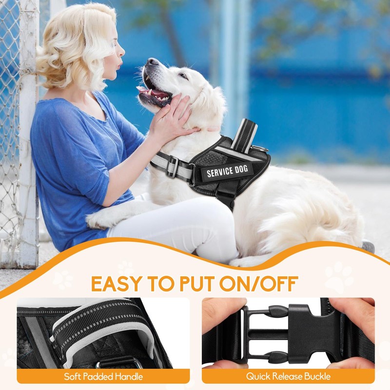 - 【What Will You Get】The package comes with a service dog harness, a 5-feet dog leash, 10 bright dog patches such as "DO NOT PET," "IN TRAINING," "SECURITY," "THERAPY DOG," "SERVICE DOG,”and "EMOTIONAL SUPPORT." You can stick 2 patches at a time to express your dog's personality, mood, or to display useful information on your harness.