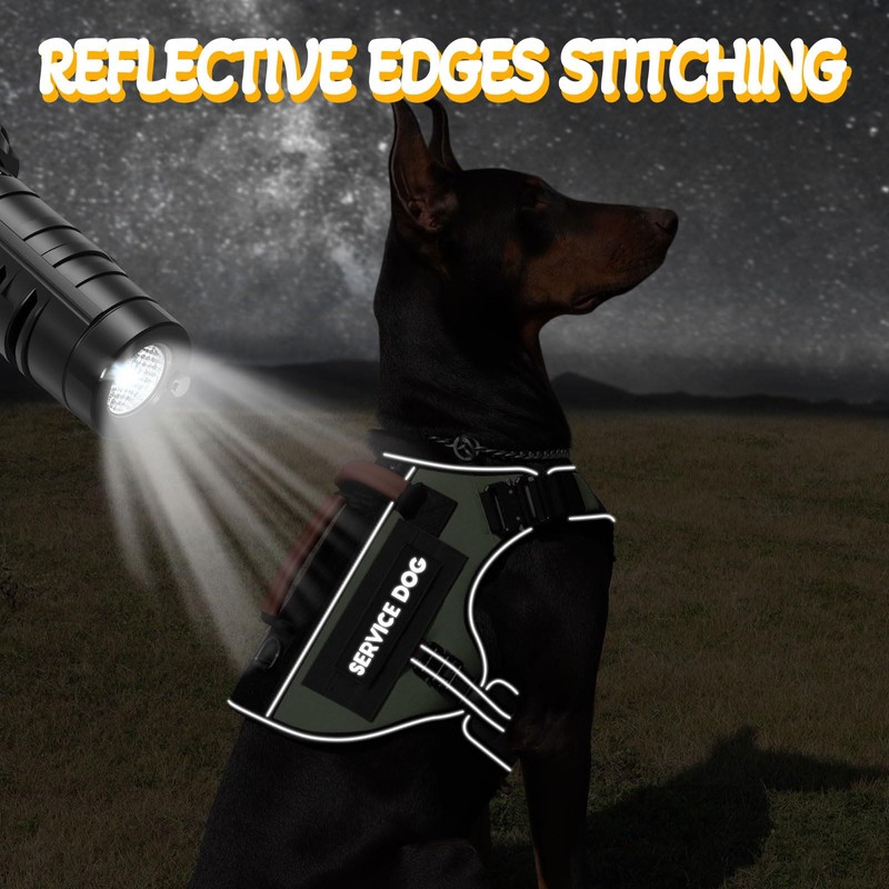 - [Practical Molle System] - Molle system Equipped on both sides for doggy bag pouches, water bottles, flashlights holder and tactical dog gear. Multiple Hook & Loop Panels for morale patches and badges to showcase your dog’s personality. Come with 2 dog patch will glow in the dark, is great for nighttime (one of SERVICE DOG, one of IN TRAINING