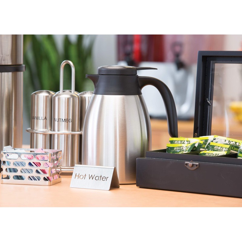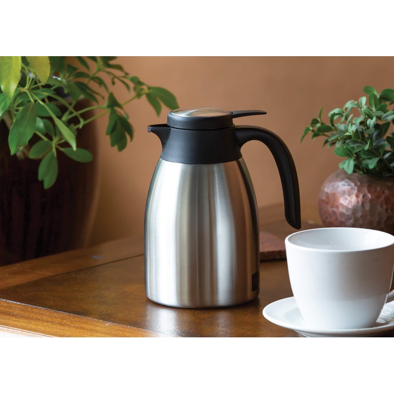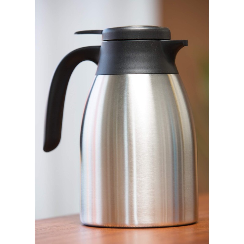 The Flow Control Carafe's uniqueness comes from the ability to control how much liquid is dispensed. Set the gasket wide open or just slightly open. Not only will it help with portion control but also help control unnecessary spills. Made of 18/8 Stainless Exterior And Interior; . Retention: 4-6 Hours; Lid Is Hand Wash Only.