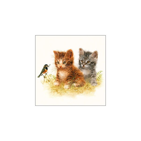 Classic napkin 33 x 33 cm with two kittens and robins for making pretty decorative objects using decoupage technique. All four napkin parts can be used individually.