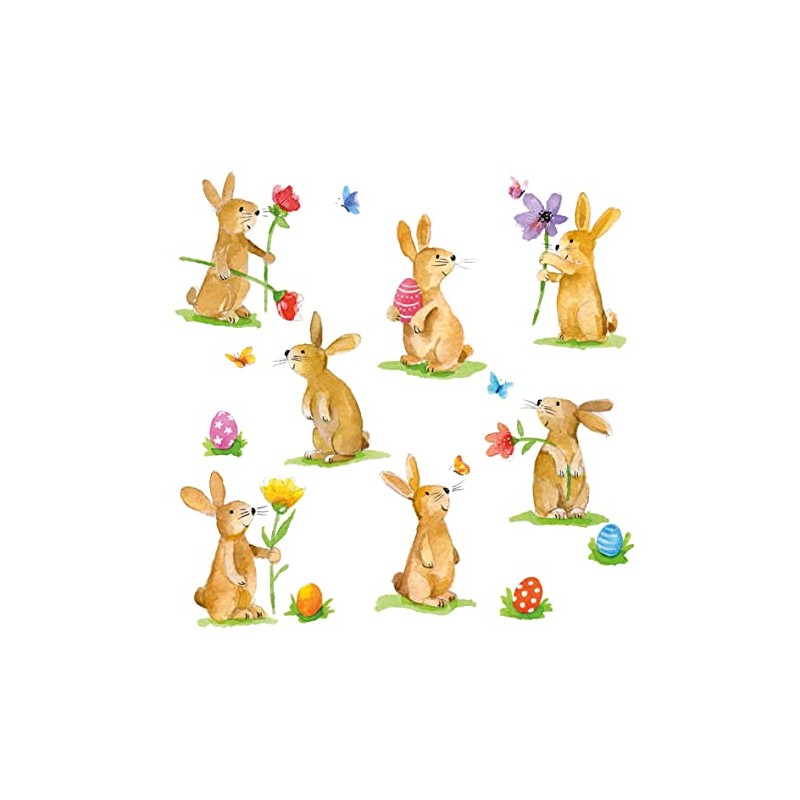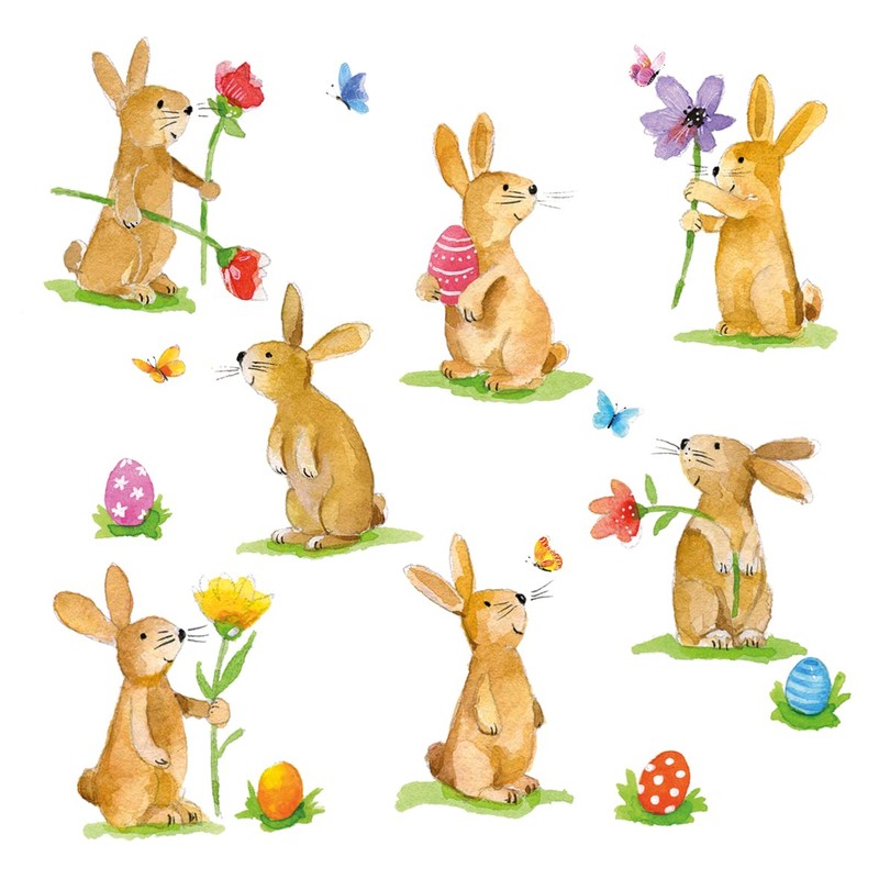 Servietten Blumen 20 Napkins Single, Funny Rabbits on White | Easter | Spring | Table Decoration 33 x 33 cm