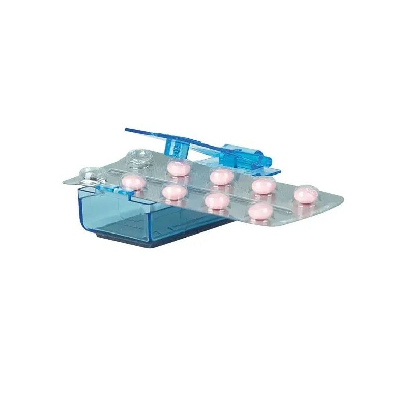 • Light pressure pushes the tablet out of the blister packaging.