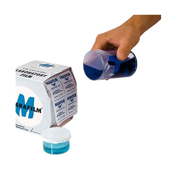 - The stretchy parafilm film is stretched over the opening of the bottle/vessel etc