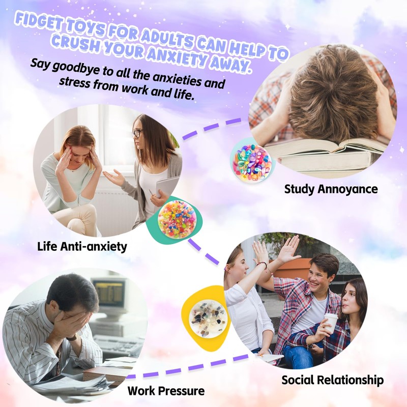 • 🆕【New Fidget Toys with Stones】Discover a new style of fidget toys! Each toy contains colorful, small stones of various sizes that capture attention, reduce anxiety, and relieve stress. A simple yet effective way to stay focused and calm.