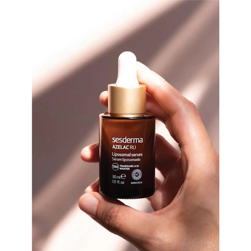 Azelac Ru Liposomal Serum es un intensivo despigmentante con alta concentración de activos que actúan directamente sobre el origen de las manchas gracias a la nanotecnología.