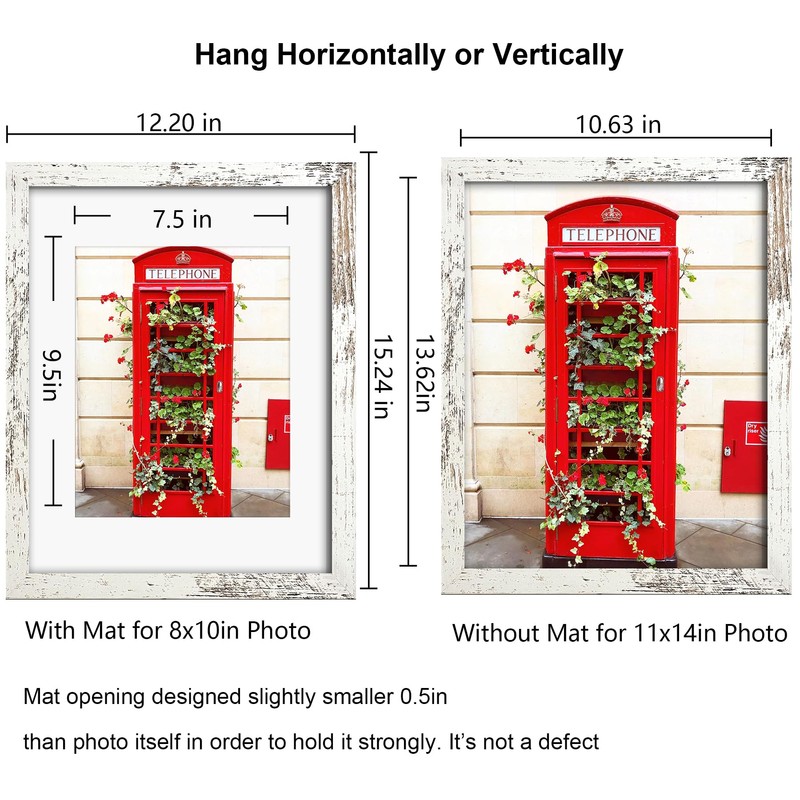 SESEAT 11x14 Picture Frame Distressed White, Display Pictures 8x10 with Mat or 11x14 without Mat,Photo Frames Wall Gallery, 1 Pack