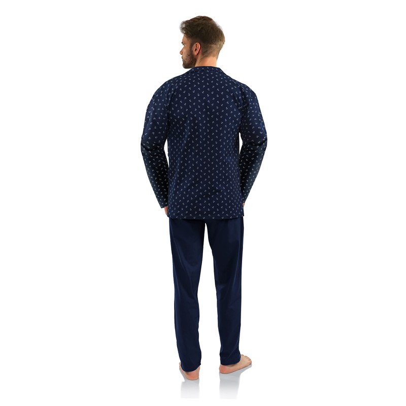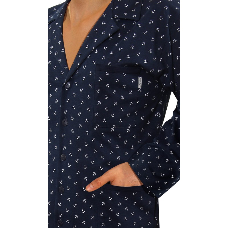 sesto senso Elegant Men's Long Button Down Pyjamas 100% Cotton Pyjamas with Button Placket, Pattern M2 - Dark Blue