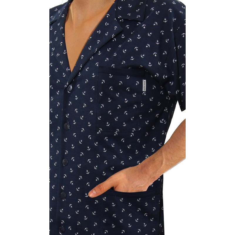 sesto senso Men's Elegant Short Sleeve Button Down Pyjamas Short Cotton with Button Placket, Anchor - Dark Blue, 4XL Große Größen