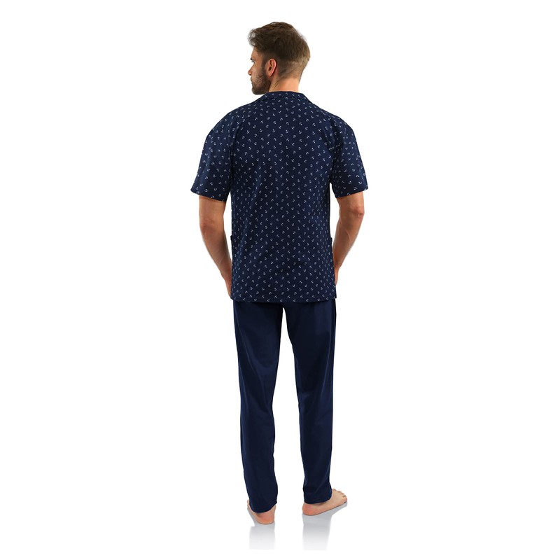 sesto senso Men's Elegant Short-Sleeved Pyjamas with Button Placket, Anchor - Dark Blue
