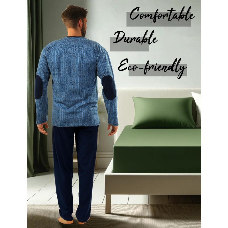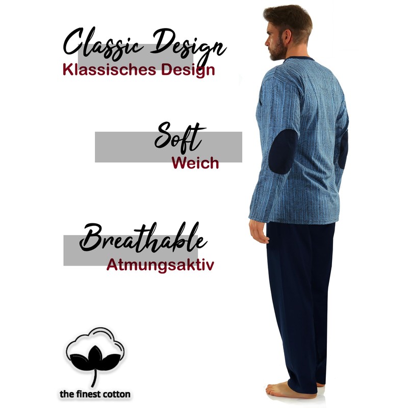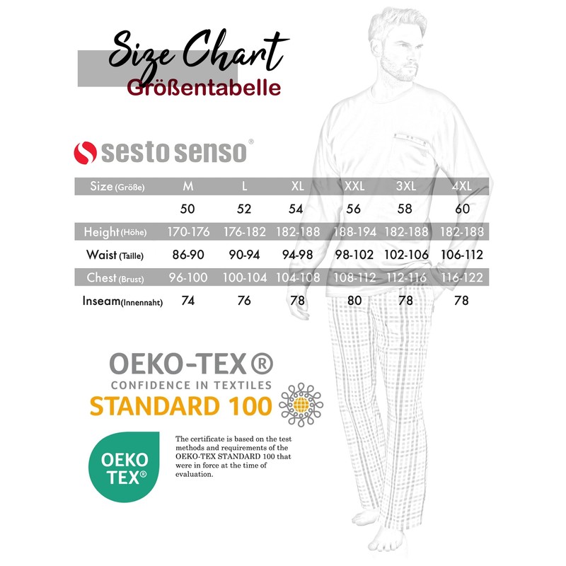 Our nightwear: The long trousers and long-sleeved undershirt are available in M–XXL and fit most sizes (details in the sizes shown in the picture). The loose-fitting design and comfortable cut of these warm pyjamas for men ensure unrestricted freedom of movement day and night. Pyjamas from Sesto Senso: an excellent choice for a good night's sleep.