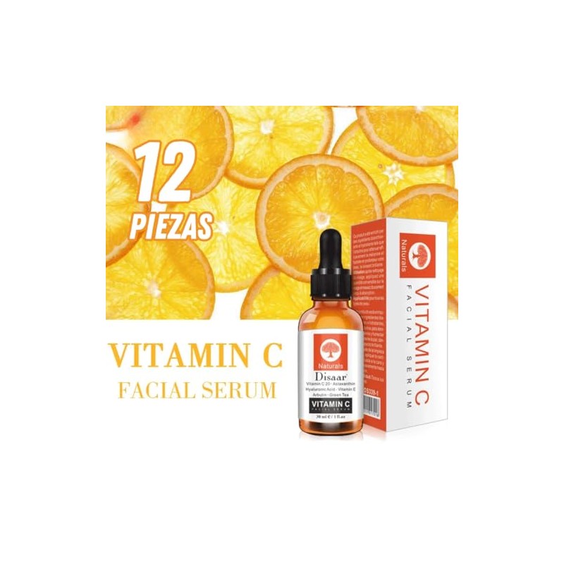 Set 12 Serum Facial Vitamina C Hidratacion Total Elimina Manchas Obscuras en la Piel y el Rostro, Aporta Vitaminas y Nutrientes al Rotro Paquete...
