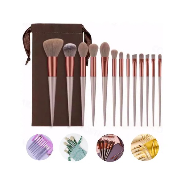 Set 13 Brochas De Maquillaje Profesional Juego De Brochas Color Marrón Claro