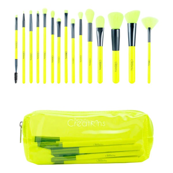 Set 15 Brochas Maquillaje Dare To Bright Beauty Creations® Color AMARILLO NEON