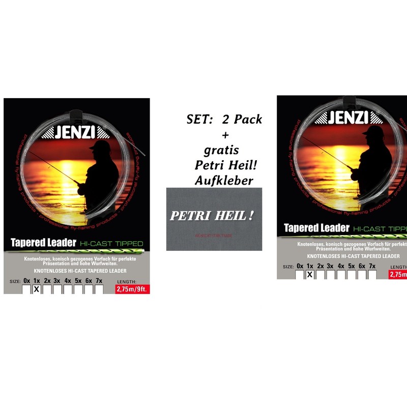 Set: 2 Pack Knotless Tapered Leader 1x/0.28/0.57 + Free Petri Heil. [German Language
