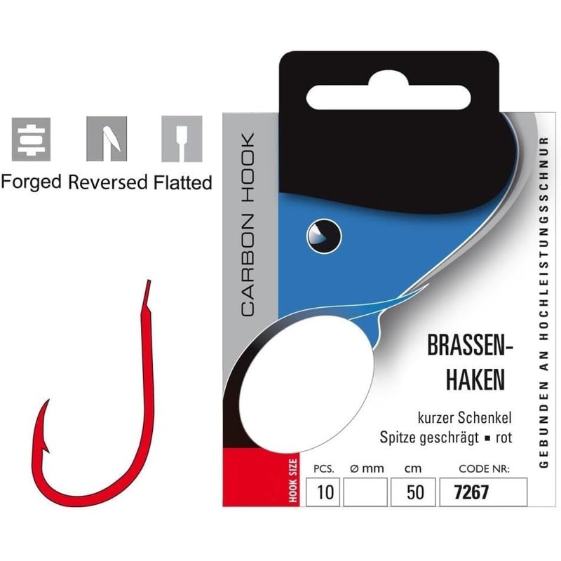 - Bream hook hook sizes 8 & 10 = 50 cm, 0.17 mm, hook size 12 & 14 = 50 cm, 0.15 mm, hook size 16 = 50 cm, 0.12 mm, hook size 18 = 50 cm, 0.10 mm