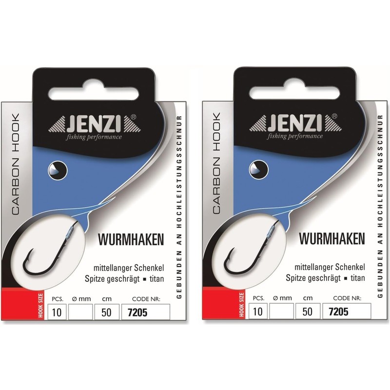 Set: 2 packs of Jenzi tied worm hooks, fishing hooks, carbon/titanium (20 pieces), 50 cm hook size 1, 2, 4, 6, 8, 10, 12 & 14 depending on selection + free Petri Heill! sticker (hook size 2)