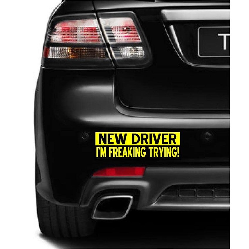SET 3 NEW DRIVER FREAKING TRYING Magnetic Bumper Sticker bright yellow
